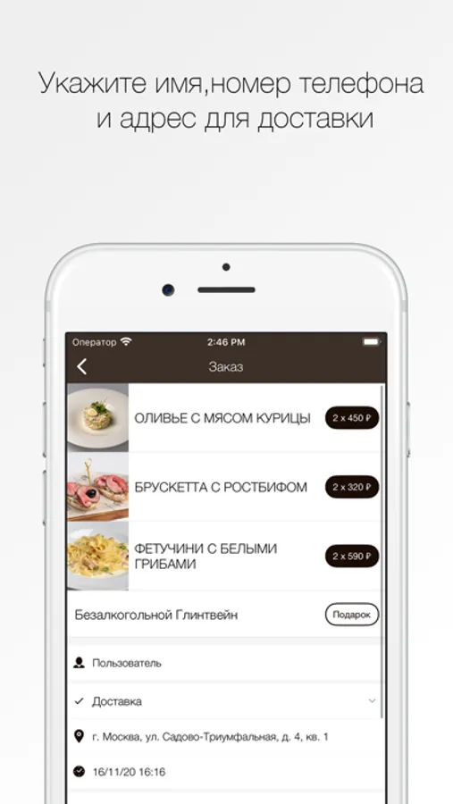 На экране заказа добавьте свою контактную информацию для первого заказа: Имя, Номер телефона и адрес электронной почты, чтобы получать уведомления об оплате.