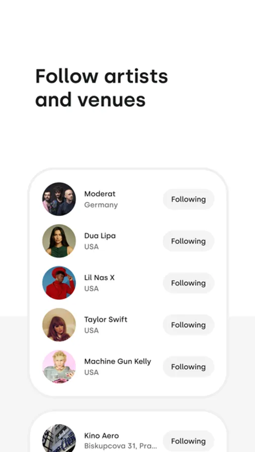 You can create an account and start adding your favorite events, artists and venues. All your purchased tickets will also be stored on your account. But even if you don't, you may still browse through events and share them.