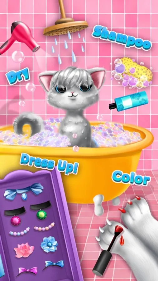 · Give Snowflake a bath - shower, shampoo, dry and comb her soft white fur, then trim and color the claws!