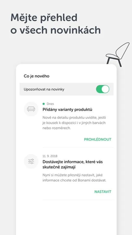 Make your home beautiful with Bonami! We’ll help you find inspiration and discover nice things for your interior just by downloading our app. In few clicks you can open up a way to fresh campaigns starting daily and to favourite items on stock.