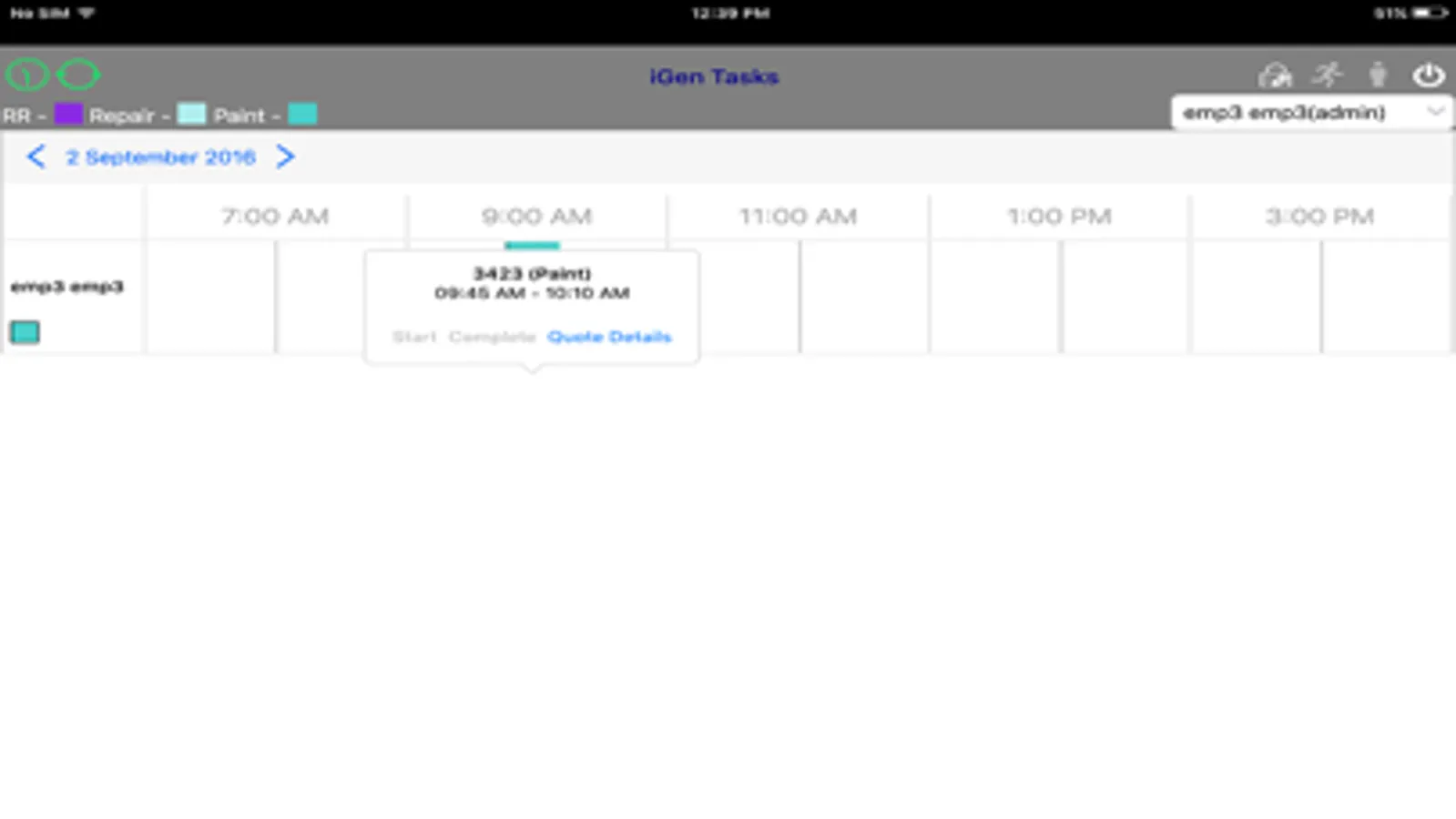 The app allows you to view the jobs scheduled for the employee and also allows him to start the job and complete it.