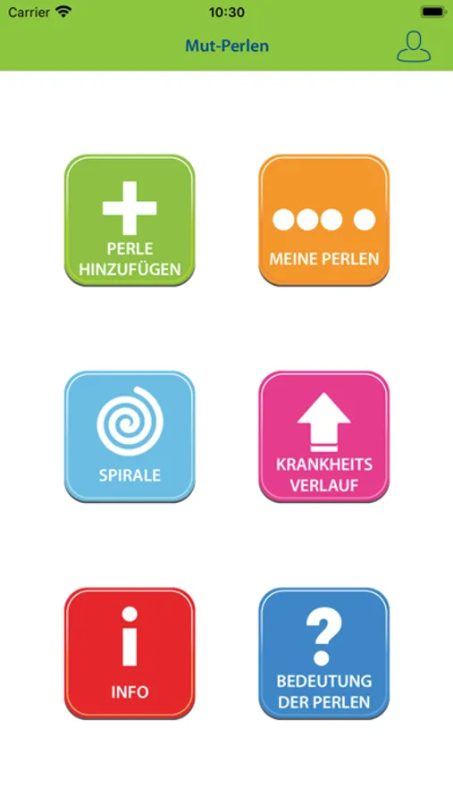 Die Mut-Perlen-App stellt eine Ergänzung zur Mut-Perlen-Kette dar. Mit ihr kann die Mut-Perlen-Kette auch virtuell aufgefädelt werden. Die App hilft dabei, die Mut-Perlen zu zählen, sich die richtige Reihenfolge der Perlen zu merken und die Kette mit Freundinnen und Freunden zu teilen. In der App kann die Bedeutung der einzelnen Perlen ganz einfach nachgeschlagen werden und eigene Gedanken können festgehalten werden. Die App funktioniert sowohl auf dem iPhone als auch auf dem iPad.