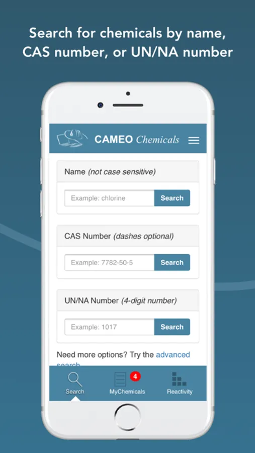 * Search by name, CAS number, or UN/NA number to find chemicals of interest in the extensive database of thousands of hazardous substances. Includes "type ahead" feature for simplified chemical name searches. An advanced search with additional search criteria is also available.