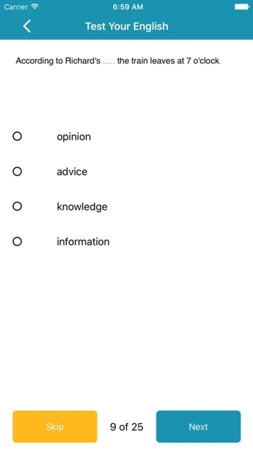 Test Your English is an app that helps you check your English proficiency. With the help of this app you can take an English test and check how good you score in the test. The test has a mix of all kinds of difficult and easy English MCQs that can help you check as well as sharpen your English. With the help of this app you can prepare for IELTS test as well as NTS test.