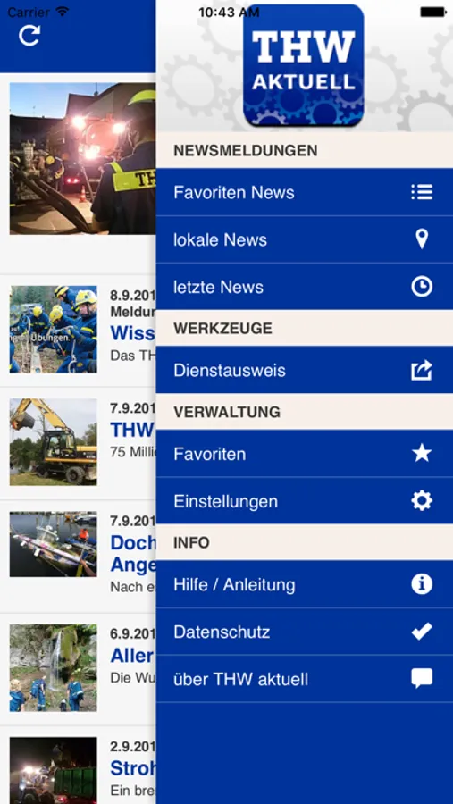 Aktuelle Nachrichten aus der Welt des Katastrophenschutzes der Bundesanstalt Technischen Hilfswerk erhältst du mit dieser App - Informationen und Meldungen zu Einsätzen, Übungen, Ausbildungsmaßnahmen, der Jugend und aus vielen weiteren Bereichen erwarten dich.