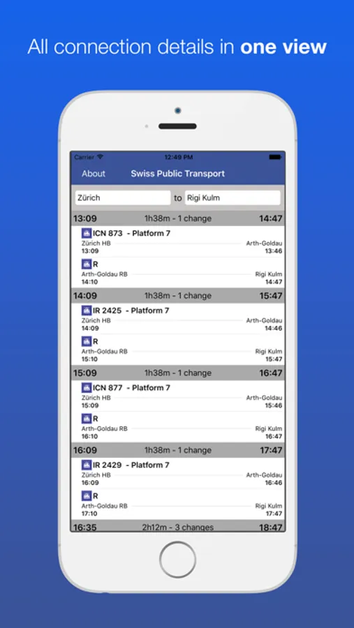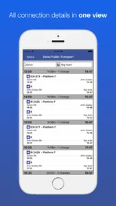 This app is your personal public transport assistant for Switzerland! Whether you are using it for your daily commuting or if you are going for a hike in the Alpes, this application will provide you live connections all over Switzerland.
