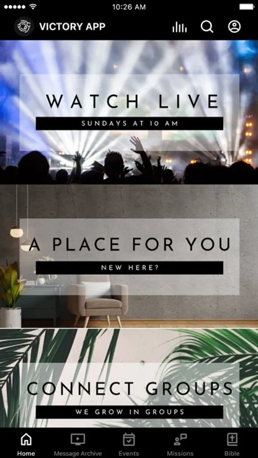 The VICTORY CHURCH App was created with the Subsplash App Platform.