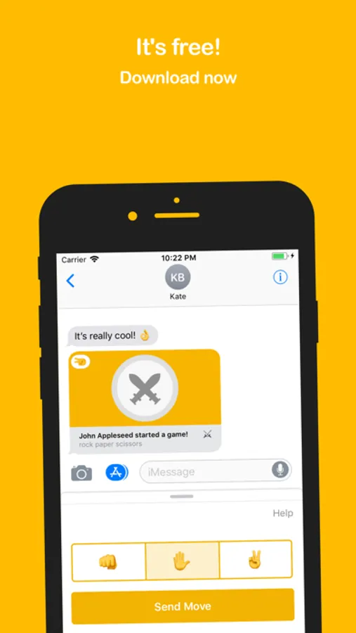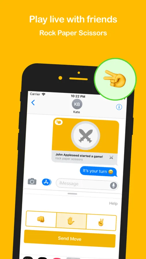 Play the classic Rock Paper Scissors game with friends and family. With this multiplayer app you can play live. The app is completely free to use, and no accounts are needed. It's super easy, and integrates nicely in your iMessage conversations. Download the app now and start challenging your friends!