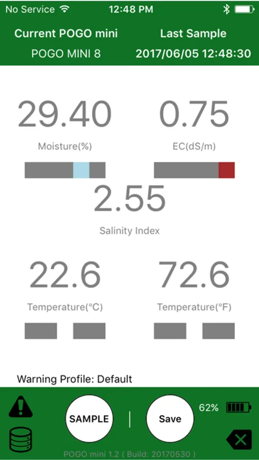 The POGO mini app allows for multiple custom warning settings to be made allowing you to know where your conditions are in relation to your target ranges with every sample taken