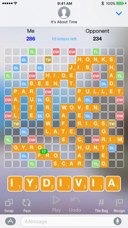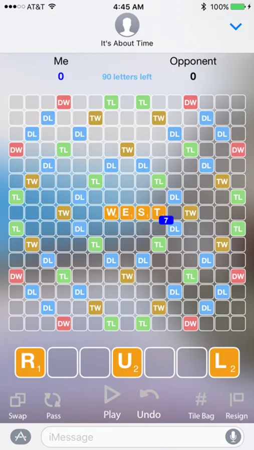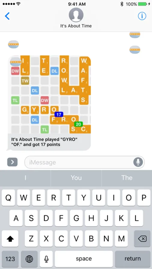 Words for iMessage is like Words with Friends & Scabble but with a couple twists. 1) Bonus tile spaces are random for new games. So be sure to look at the board and pick a good strategy. 2) The game is built into iMessage! Play with any of your friends, chat with them, and do your best to win! Create long words with as many bonus tile spaces as you can. The person with the highest score at the end of the game wins!