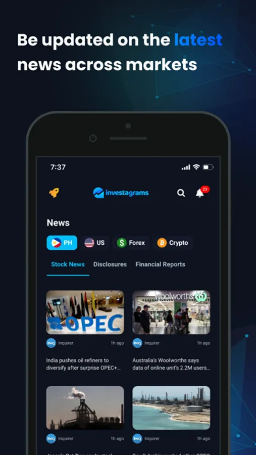 At Investagrams, you can easily monitor and find the best opportunities in these markets in real time: Cryptocurrency, US Equities, Forex, Commodities, Global Indices, and Philippine Equities.