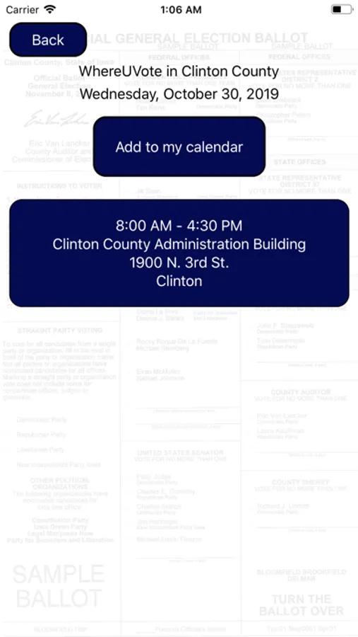 WhereUVote for Clinton County Iowa provides a quick and easy way to find a location to vote early or find your polling place on Election Day in Clinton County no matter where you are!