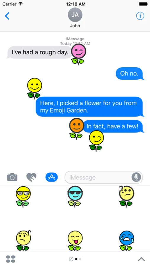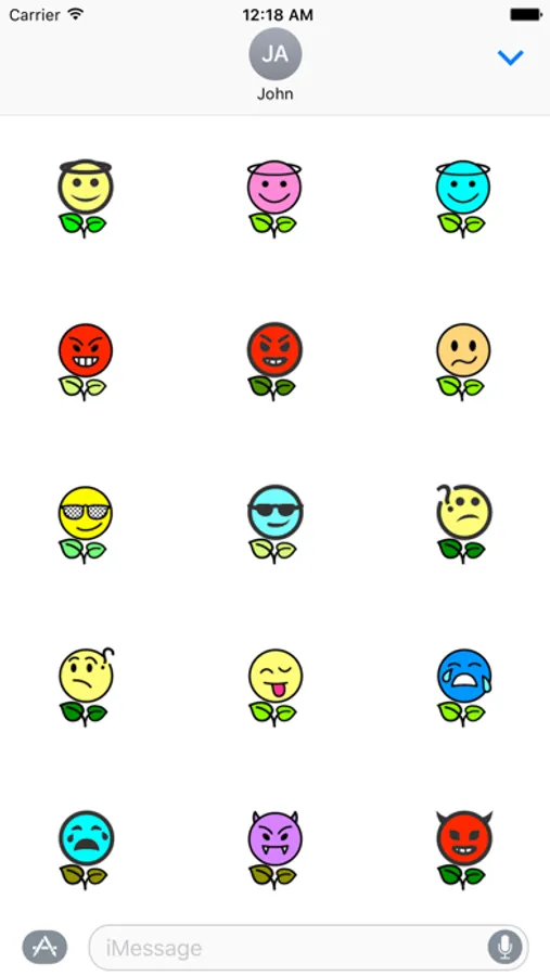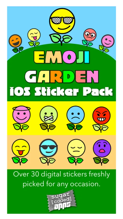 Over 30 colorful emoji themed flower stickers are at your fingertips to express yourself or communicate a feeling with those in your life.