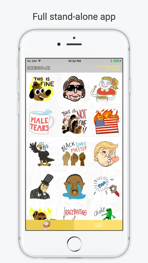 The political cartoonists at The Nib rallied to bring you a full keyboard of over 80 emojis that will be frequently updated with new politically and socially relevant emojis, including the best of Trump, Hillary and Obama along with other popular memes and rallying cries.