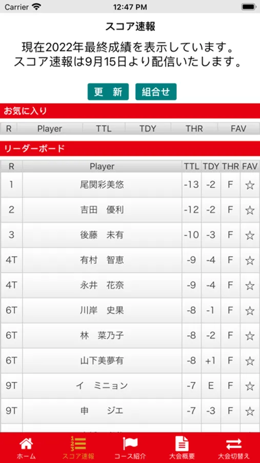 2023年9月15日〜9月17日開催の国内女子ツアー「住友生命 Vitality レディス 東海クラシック」、2023年9月28日〜10月1日開催の国内男子ツアー「バンテリン東海クラシック」の情報をお届けします。お気に入り選手を登録できるリアルタイムスコア速報などお楽しみください。