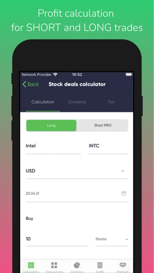 You can calculate your profit for SHORT and LONG deals with taxes, broker comissions.