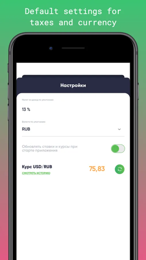 Multi-Currency Support: Perform calculations in various currencies, including USD, EUR, and RUB, with conversion options for results.