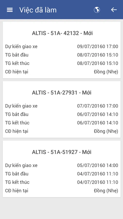 - KTV xác nhận các thời gian thao tác công việc của mình trên xe được giao (thời gian bắt đầu, thời gian kết thúc, thời gian tạm dung)