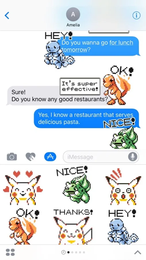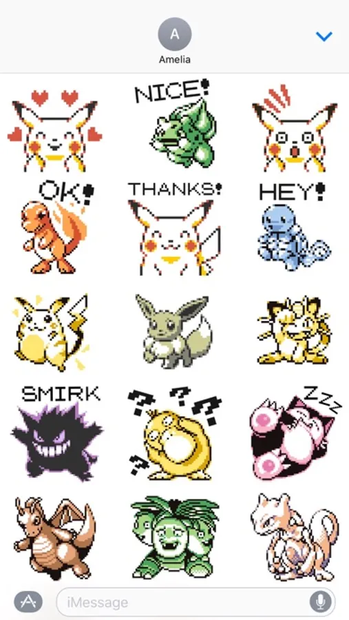 Pokémon appear in a sticker pack that you can use in iMessage! You can liven up your messages with pixel art illustrations of Pokémon that appear in Pokémon Red, Pokémon Blue, and Pokémon Yellow!