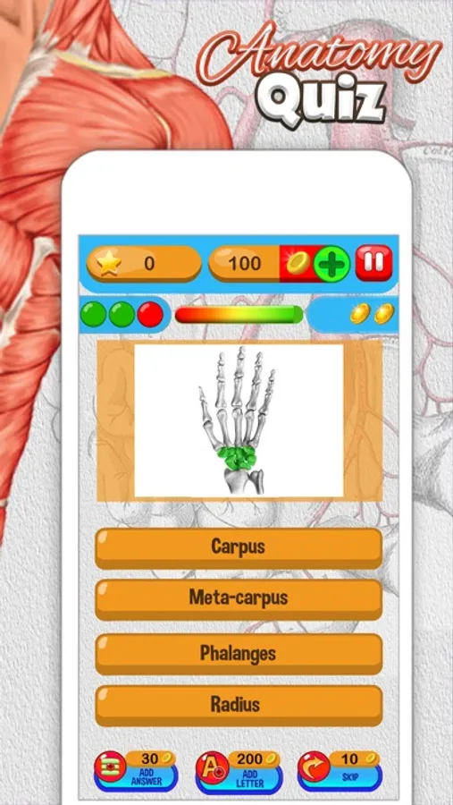 This awesome quiz app provides you with a great variety of useful facts to which you should probably pay attention! Anatomy is a scientific study of organisms, their systems, organs and tissues! Check your knowledge on these issues and level it up! Educate yourselves and have fun while learning! Get acquainted with many amusing facts on human body and become an expert of human anatomy! Don't miss the opportunity to play this useful brain game of high quality!