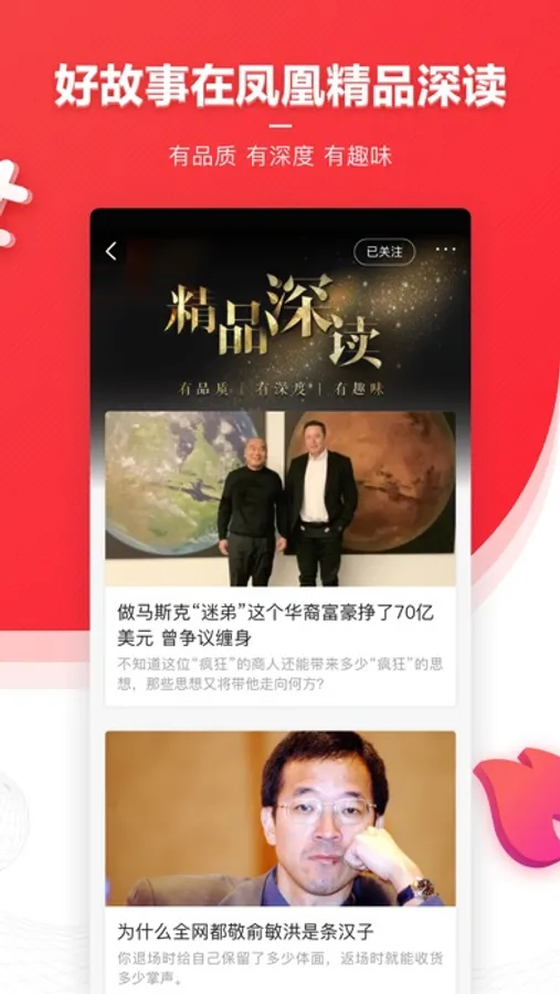 只推荐和你兴趣相关的新闻和内容,使用时间越长,凤凰新闻越懂你。