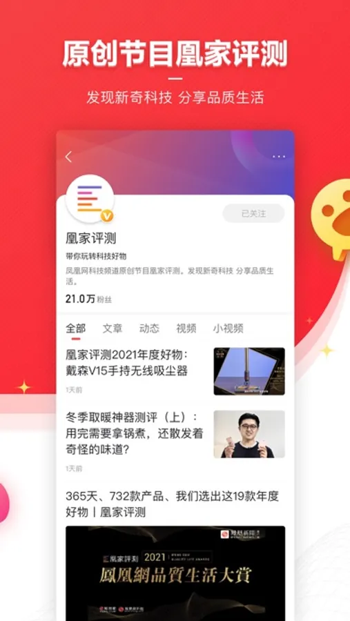 大咖、网红、草根组团加盟凤凰号,围观你所熟悉的名嘴一本正经的吐槽调侃。网罗从新闻、头条、热点、微博、体育、娱乐、时尚、财经、IT互联网、国际、军事、汽车、星座、养生、减肥、美容、动漫、历史故事、美食、摄影、旅游、教育、佛学等领域的海量自媒体订阅。你喜欢的,都在这里。