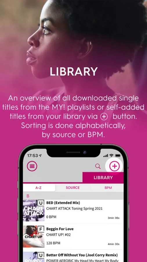 You can adjust the music to your workout speed and create, mix and save your own playlists.