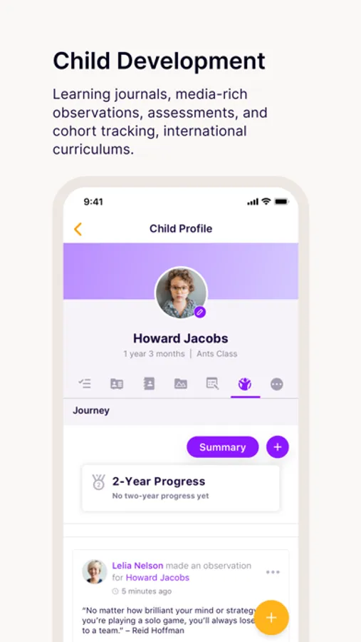 Help children grow and develop with learning journals, media-rich observations, assessments and cohort tracking.