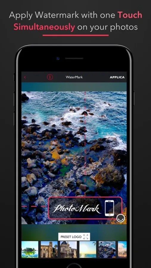 Use the advanced function of the application to place your logo on your photos and Logomatic do the rest.