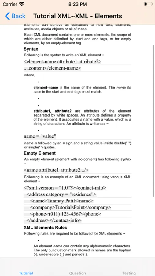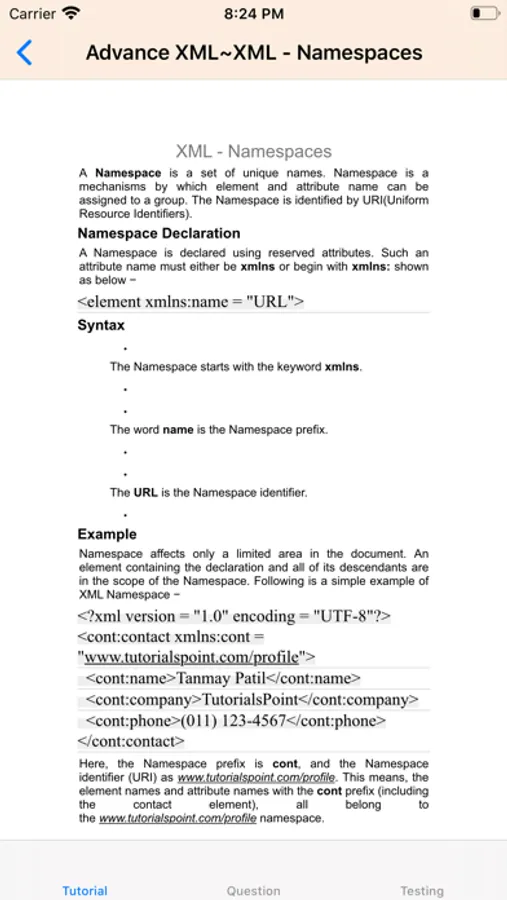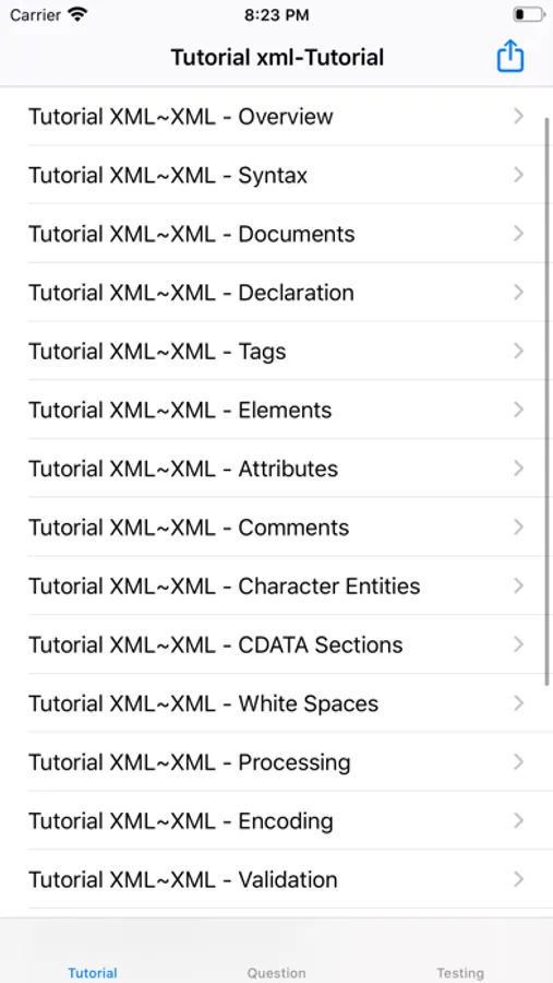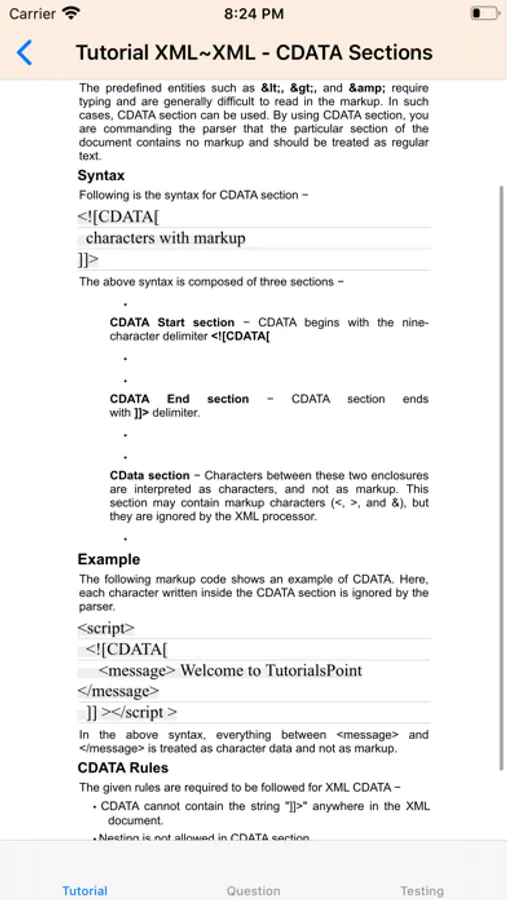 XML stands for Extensible Markup Language and is a text-based markup language derived from Standard Generalized Markup Language (SGML). This tutorial will teach you the basics of XML. The tutorial is divided into sections such as XML Basics, Advanced XML, and XML tools. Each of these sections contain related topics with simple and useful examples.