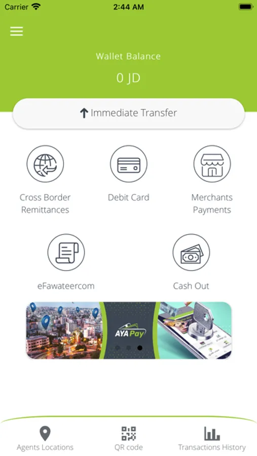 AYA-JO mainly provides various means to allow end users to pay for their goods using a mobile application. The whole process is approved and monitored by the central bank of Jordan.