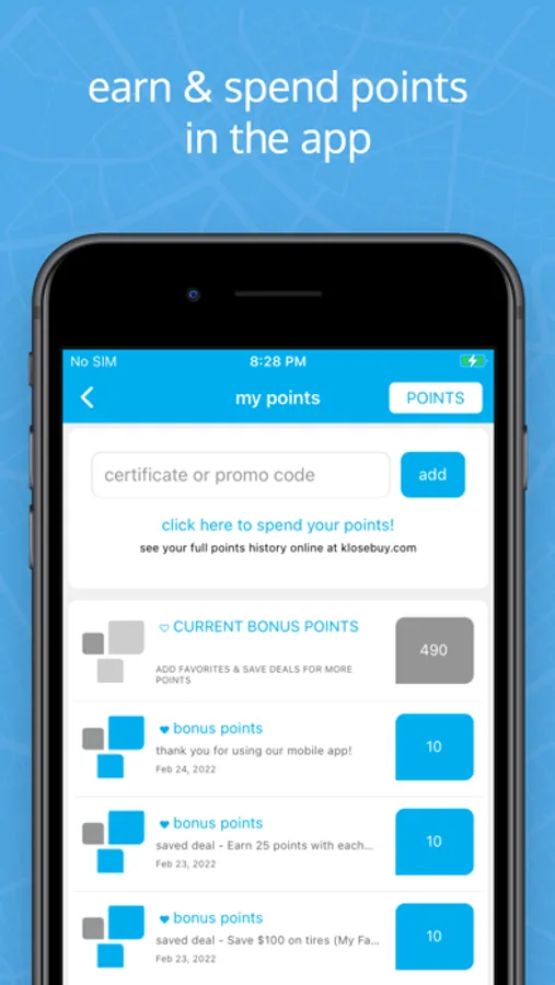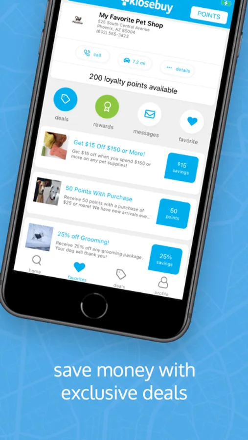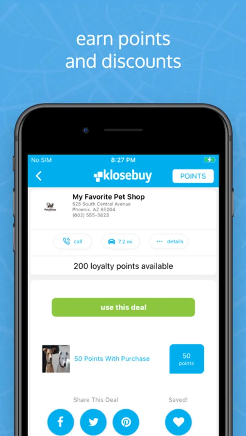 Earning points is easy. Automatically receive points for joining Klosebuy, favoring businesses, and referring friends. Collect more points from your favorite businesses through deals and specials, on your birthday, and even for sharing offers on social media.