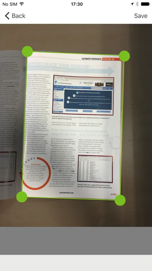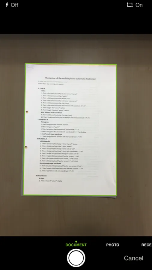 • Automatically detect the edge of any document and apply document specific filters, generating a superior quality capture for sharing and use.