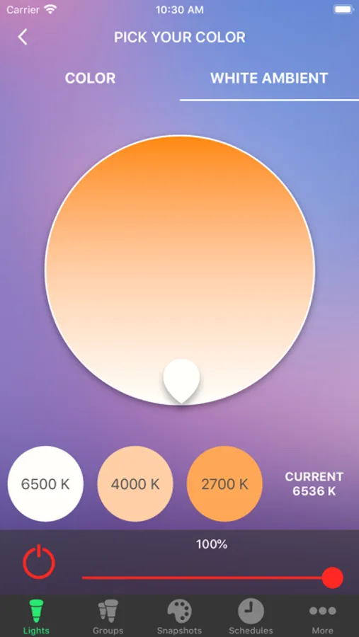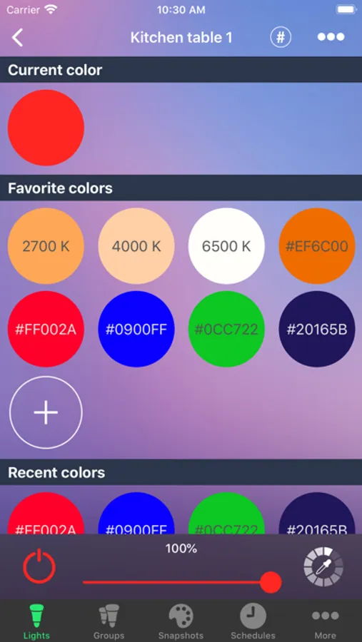 Use your phone as a remote to turn up the brightness, quickly toggle lights on and off, switch colors and save your favorite ones.