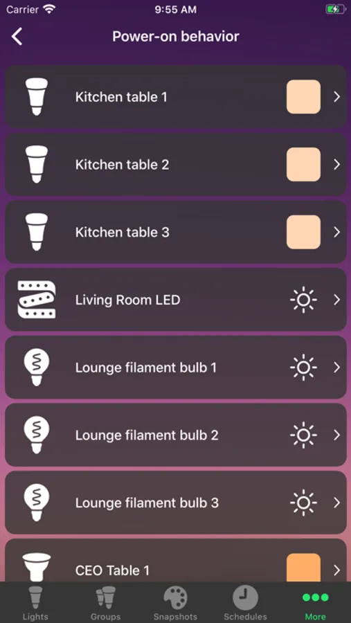 - Power-on Behavior feature. Set what your lights do when they are powered on.
