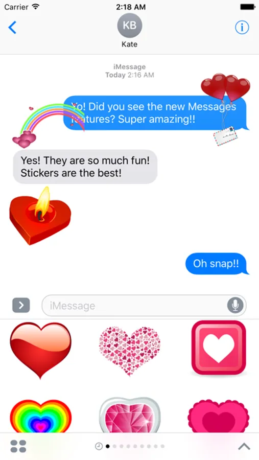 Spread the love with this sticker pack of heart emojis. You can peel and place these emoji stickers on anything in your conversation — bubbles, images, or even other stickers.
