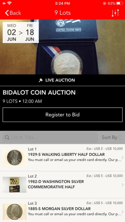 Buy at auction with confidence! Find coins, currency, gold, silver, bullion, slabs, commemoratives, tokens and other numismatic items. Designed with you in mind! At BidALot Coin Auction our feature rich app includes push notifications, the ability to 'watch' lots, to place absentee bids and experience live bidding and check past auction archives. There’s also a consignment section - all for your on-the-go convenience. Download now and start experiencing coin auctions in a whole new way! This app allows you to experience coin buying in a real time live setting without having to leave the comfort of your home or office. If you are on the go for business or pleasure you won’t have to worry about missing out on the coin deals because this app allows you to bid from anywhere in the world with your smart phone, tablet or computer.