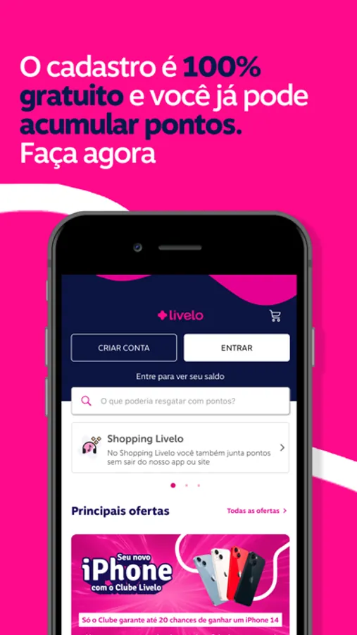 Só na Livelo você resgata produtos, ganha cashback, consulta seu saldo e ainda tem acesso a benefícios e promoções exclusivos de um jeito fácil e rápido! É só baixar gratuitamente!