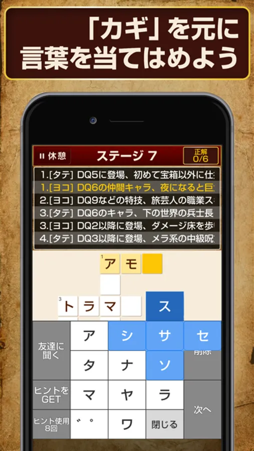 Let's fit the words on the basis of the "key" associated with the "Dragon Quest"!
