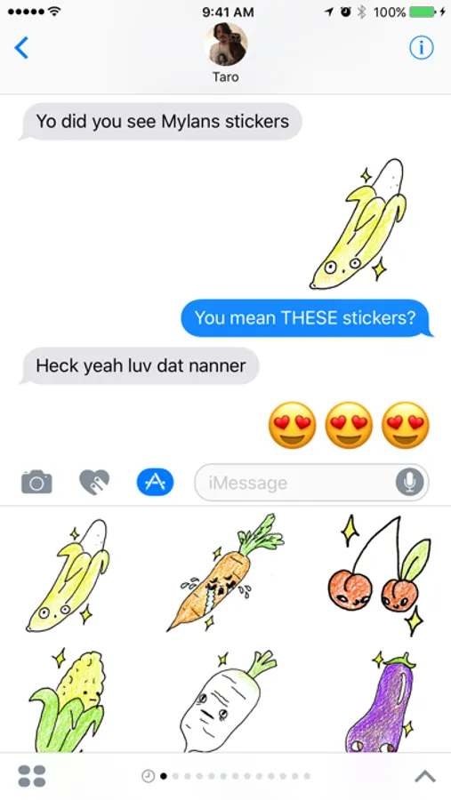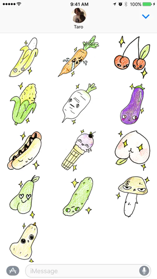 Soon to be your favorite fruits and veggies! Have fun sending cute and expressive food shaped stickers to everyone. Hand drawn and colored by Mylan Nguyen. 100% good for your health so treat yo' self!