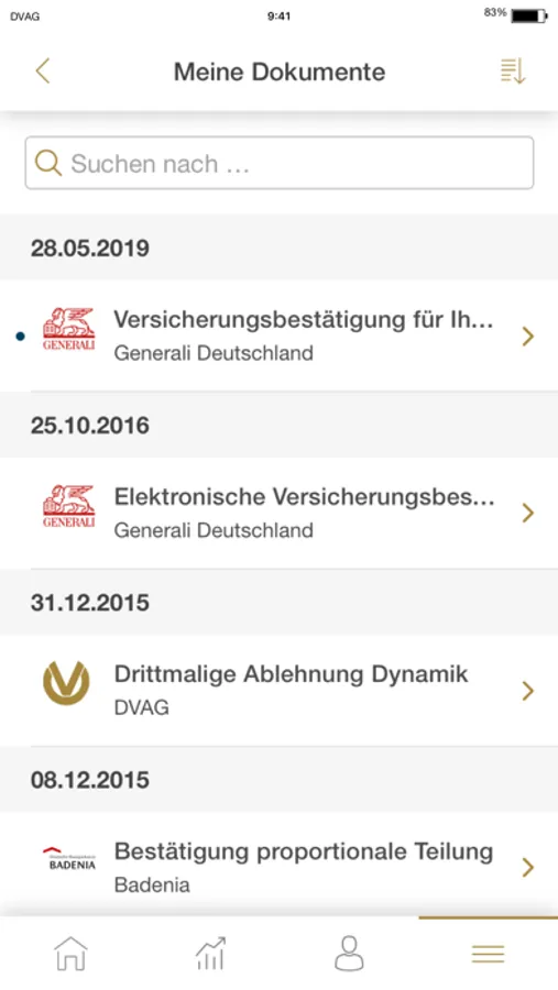 Elektronische Anträge, Vorabinformationen oder Post zu Ihren Verträgen können verschlüsselt an MeineApp gesendet werden. Ihre Dokumente wie Gehaltsnachweise, Renteninformation oder bestehende Verträge können Sie in einem sicheren Kanal Ihrem Vermögensberater zukommen lassen.