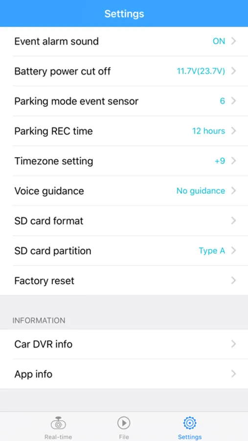 This app can play live video feed and recored files from Wi-Fi enabled Car DVR.