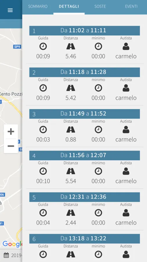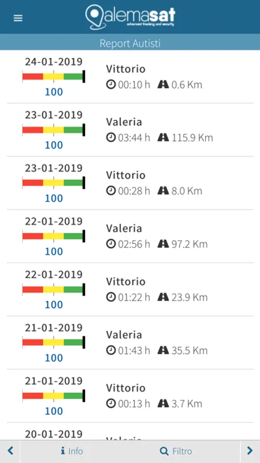 • Il Report autisti filtrabile per autista e per Periodo di interesse.