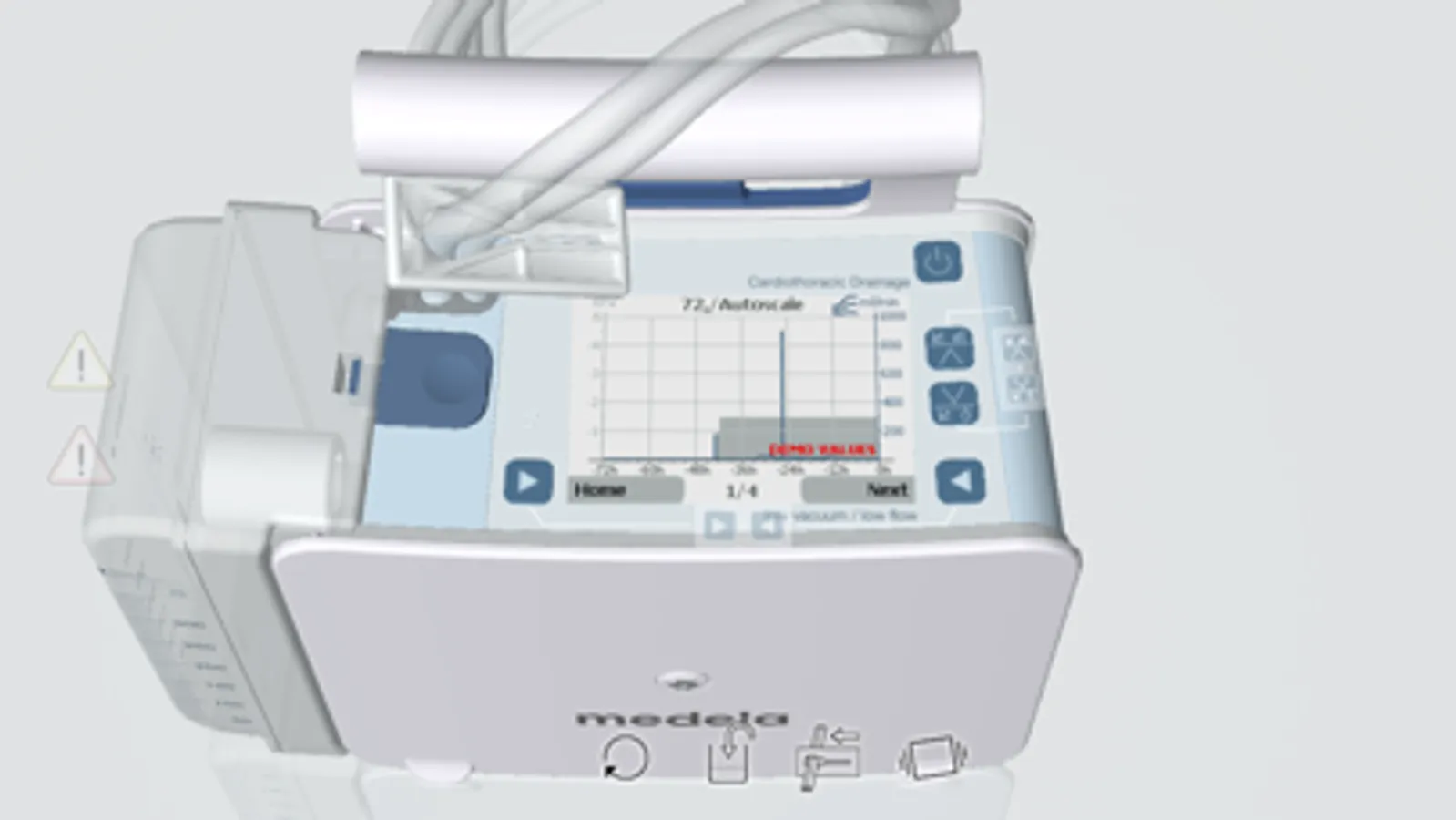 Medela's Thopaz+ takes chest drainage therapy to a new level of care. Unlike analogue systems, it reliably regulates the applied pressure at the patient's chest and digitally (and quietly) monitors critical therapy indicators. Clinical data has demonstrated that Medela's chest drainage therapy improves outcomes and streamlines the delivery of care.