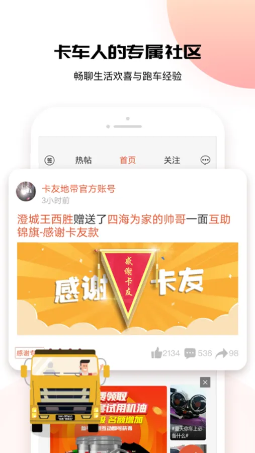 【线上社区】货车司机交流经验、分享感受的聚集地,内容覆盖实时路况、经验交流、新闻资讯、沿途风光、卡友相会等