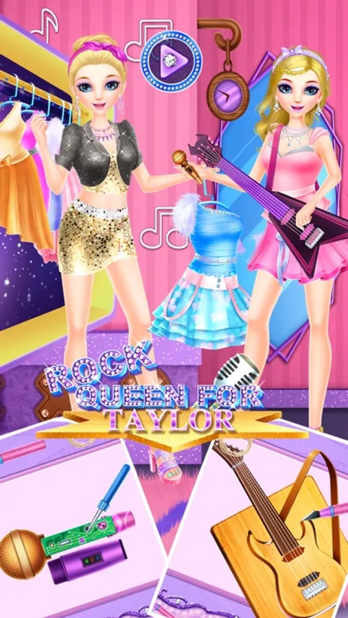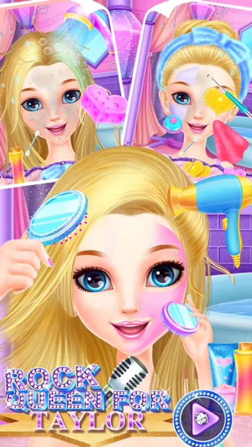 There is beautiful Rock Queen called Taylor. Today she plans to have a show performance. Are you willing to help her make up beautifully and design one nice guitar for her to let her have an unforgettable performance? Come to join our brand new game and have fun. First step is nursing. You need to help the girl have a facial spa. Clean her hair and then dry it. Comb her hair to make it look smooth. Then you can fix her hair and wash her face with facial cleanser and then get rid of those red pimples on her face one by one. After that, come to make facial and eyes masks for her and put some facial creams to make her face skin look fresh. Second step is making up. You can use our given cosmetics to make the queen look amazing. Third stage is dressing up. Try your best to dress up the girl with fashion clothes and accessories. Fourthly, you need to help the girl design a new guitar. You can choose to play whack-a-mole or receiving fruits games. Follow our instructions to make a new guitar steps by steps and then decorate the guitar with different kinds of decoration materials. In the fifth stage, you also need to play mini games to win buy a new microphone for her. Then come to make a new microphone for the queen’s sing. We will show you the methods of making microphone. After producing microphone, you can decorate the microphone to make it look cool. At last, through your efforts, the rock queen will have a nice concert. Show us in the end.