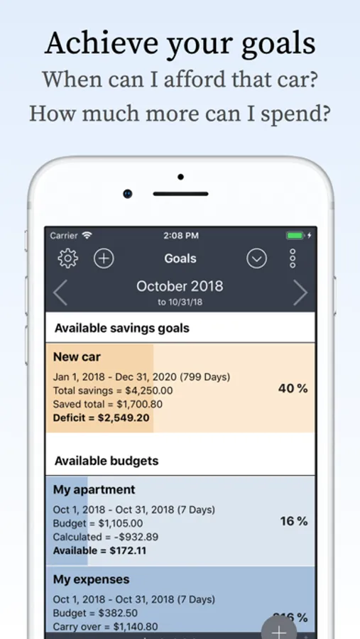 • Create saving objectives for larger and smaller investments (including automatic allocation of transactions)