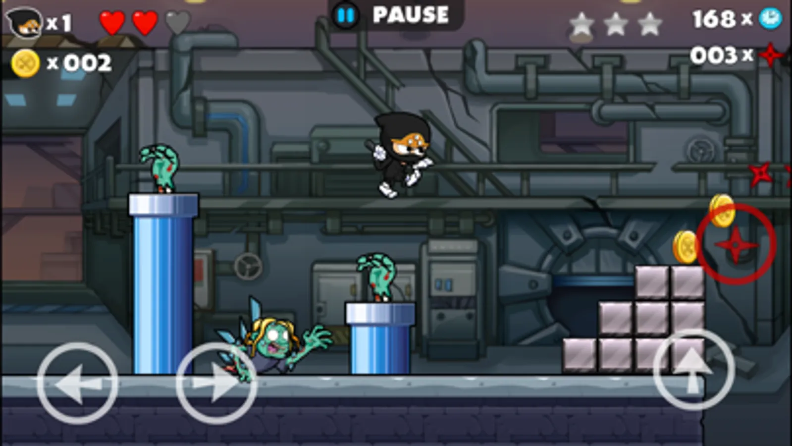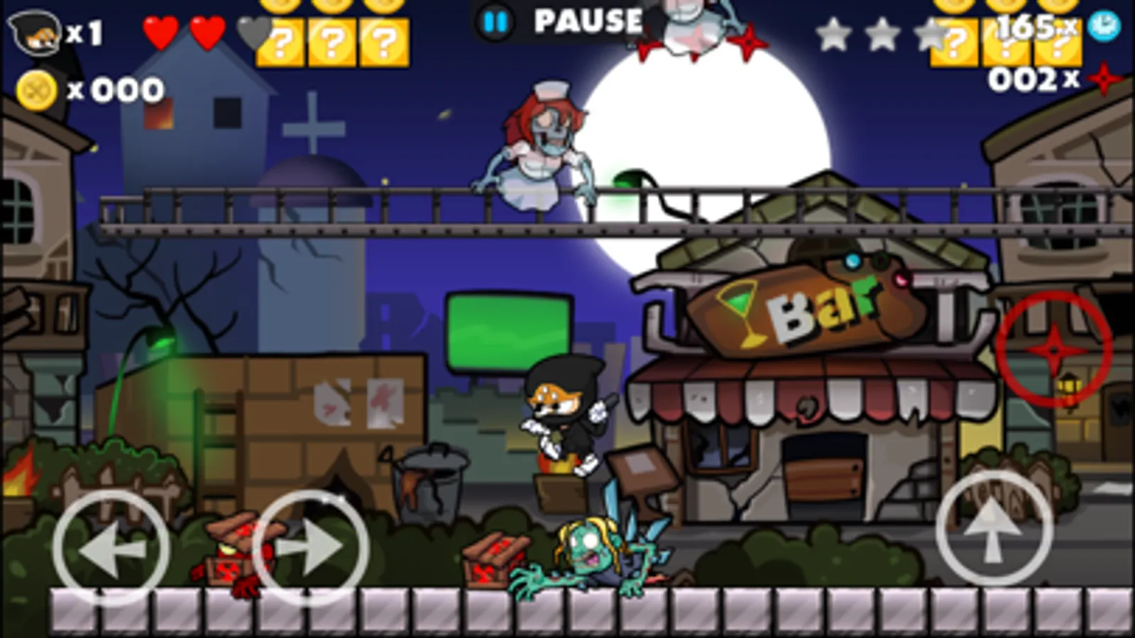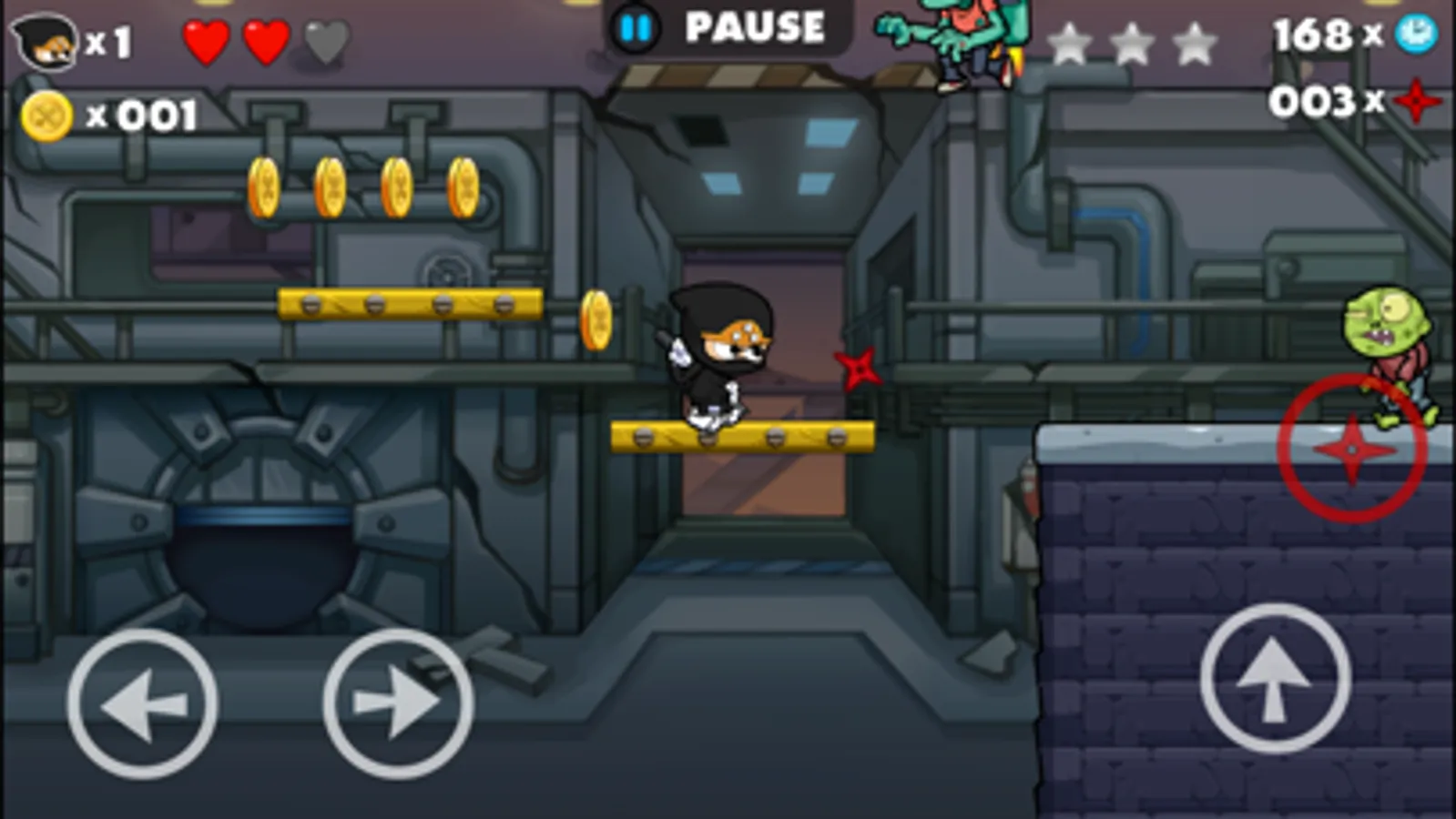 Classic platform game Ninja vs. Zombies got top free new in many countries! In return for your great support, we made a new version - Ninja vs. Zombies 2! Fantastic jumping & running game, take you back to your old days again.