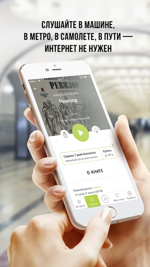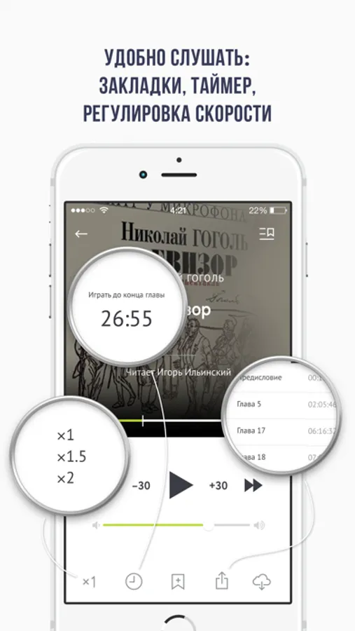 Послушать сказку на ночь. Наверстать школьную программу по литературе, стоя в пробках. Тренироваться в спортзале под Акунина и ехать в полутёмном плацкартном вагоне под Ерофеева. «Читалка книг» — это ваше всё в мире звучащей литературы: самое красивое, быстрое и тактильно безупречное приложение для покупки и воспроизведения аудиокниг.