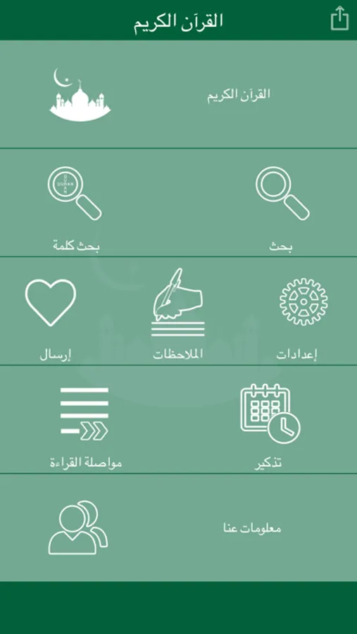 - Support for sharing the Arabic Quran Offline in social media (Facebook, Twitter, Whatsapp)